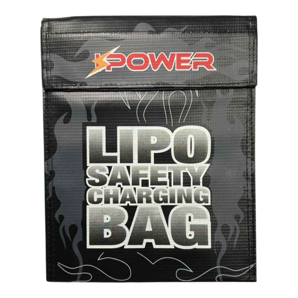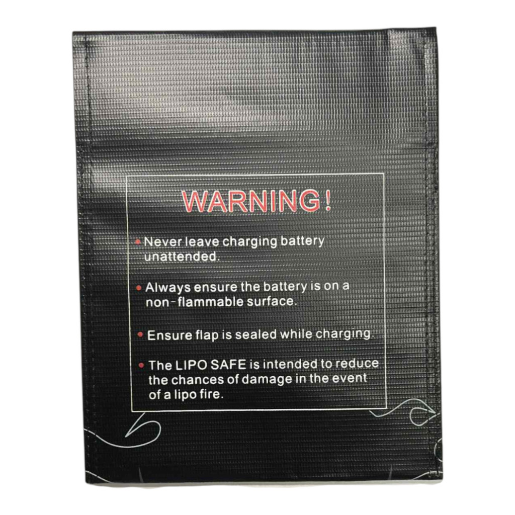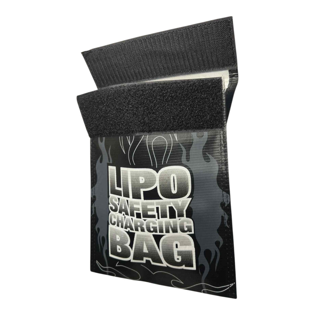 Közepes méretű, nem gyúlékony anyagokból készült, LiPo akkumulátorokhoz készült tasak, amely megvédi a környezetet a LiPo akkumulátorok esetleges kigyulladásának veszélyeitől.