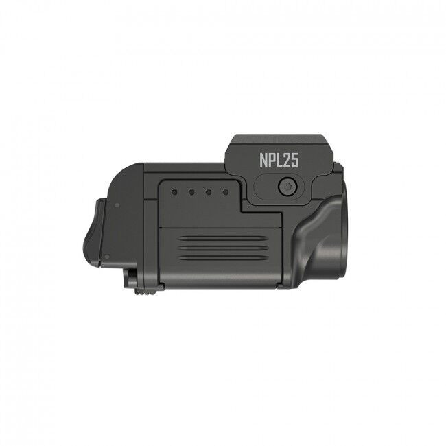 A Nitecore NPL25 tervezése során a lehető legkisebb mért elérésére törekedtek, hogy fegyveren viselve a legkevésbé zavarja a fegyver használóját. Szinte észre sem lehet venni a mindössze 66 gramm tömegű és 56mm x 33mm x 32mm méretű (h x sz x m) lámpát viselése során. A lámpatest ellenálló, a repülőgépgyártásban is használt alumínium ötvözetből készül, melyet HAIII szabványú kemény eloxált bevonattal látott el a gyártó. A lámpatest végén kétoldalon elhelyezett nyomókapcsolója mindenki számára kényelmesen hozzáférhető és könnyen kezelhető. Bordázott kialakítása még kesztyűben is biztos kapcsolást tesz lehetővé. Kompatibilis a Glock és a tartozék adapter segítségével Picatinny sínrendszerrel (MIL-STD-1913) is. A flexibilis állítható sínrendszernek köszönhetően rengeteg maroklőfegyverrel kompatibilis, valamint elhelyezése testre szabható. A visszarúgásbiztos kivitelének köszönhetően stabil és megbízható fényt nyújt sorozatok leadásakor, valamint extrém rezgésnek kitettség során is.