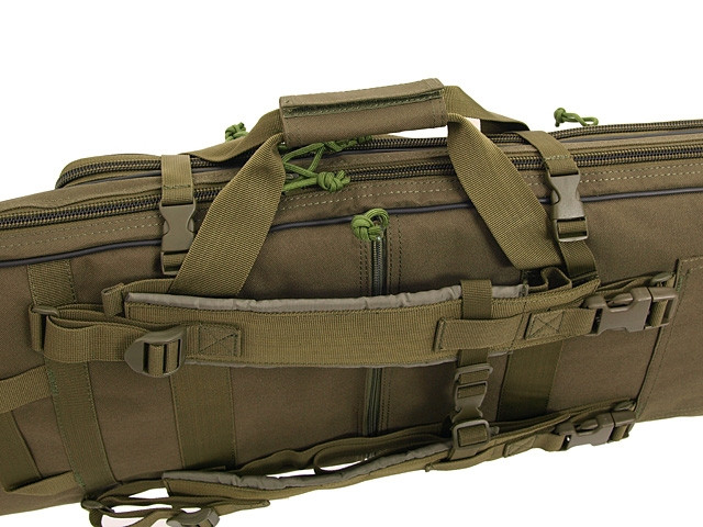 A dupla puskatok két fő zsebbel rendelkezik, a nagyobbik 82 cm, a rövidebbik 60 cm hosszú. Hátizsákként is használható. A hosszabb zseb belsejében egy rekesz is található, amellyel a fegyvertok további 25 cm-rel meghosszabbítható.