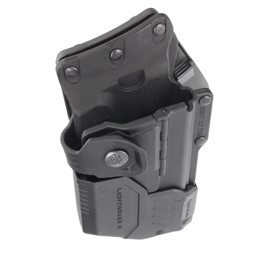 A tok használatához egyszerűen rögzítse biztonságosan az övre, oldja ki a biztonsági pántot, és egy gyors és határozott felfelé irányuló mozdulattal húzza ki a fegyvert. A lőfegyver tokba helyezéséhez először helyezze be a csövet, majd nyomja a helyére. A tok taktikai kiegészítő tartó nélkül csak Glock pisztolyokkal használható.