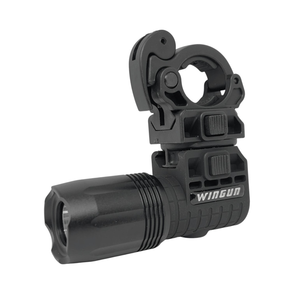 A forgatható rögzítőszereléknek köszönhetően a zseblámpa 360°-ban elforgatható és kerékpár kormányára vagy fegyvercsőre is rögzíthető.
