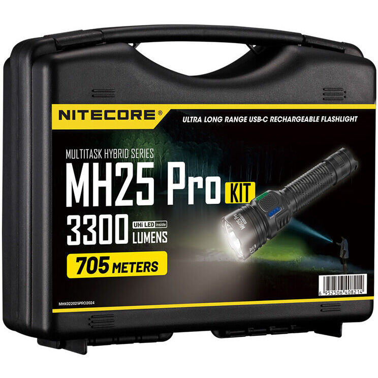 A Nitecore MH25 PRO egy közepes méretű elemlámpa, amely rendkívüli, 705 méteres hatótávolságot kínál. A 40 mm átmérőjű fejben található „Crystal Coating” bevonattal ellátott reflektor és a „Precision Digital Optics Technology” tervezésű optika, valamint az új generációs UHi 40 LED révén a lámpa 3300 lumen fényáramot és 124300 cd fényerőt biztosít. A kompakt mérethez hatalmas, 705 méteres hatótáv párosul, ami a magas fényáramnak köszönhetően nem csak egy távoli világító foltot, hanem nagyobb terület megvilágítását is lehetővé teszi.